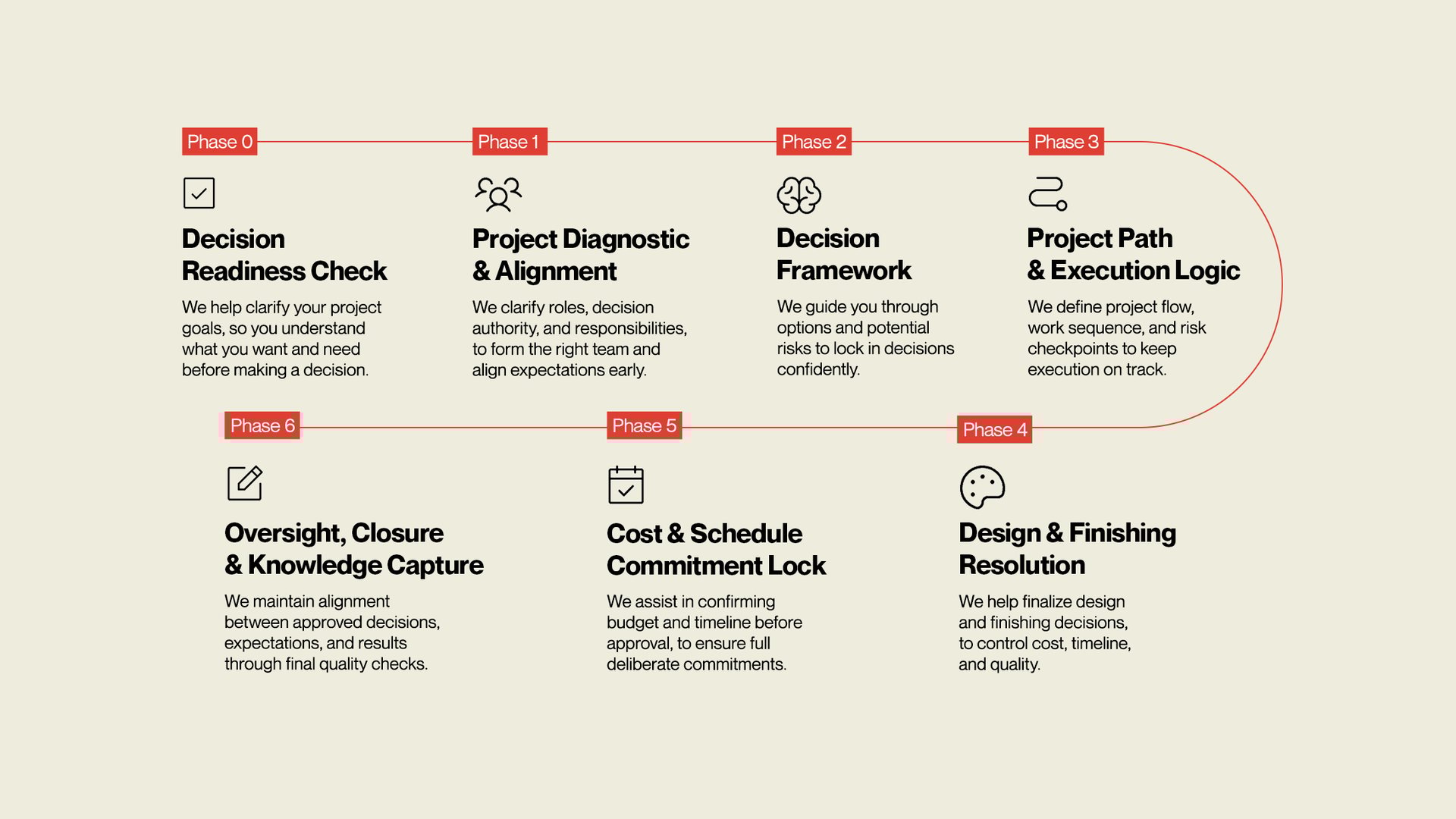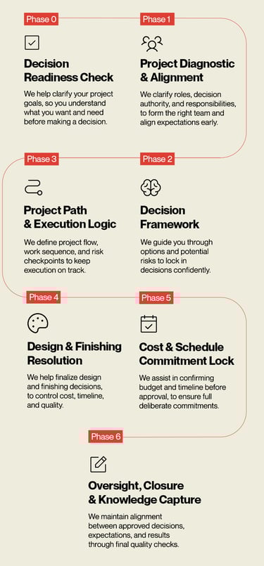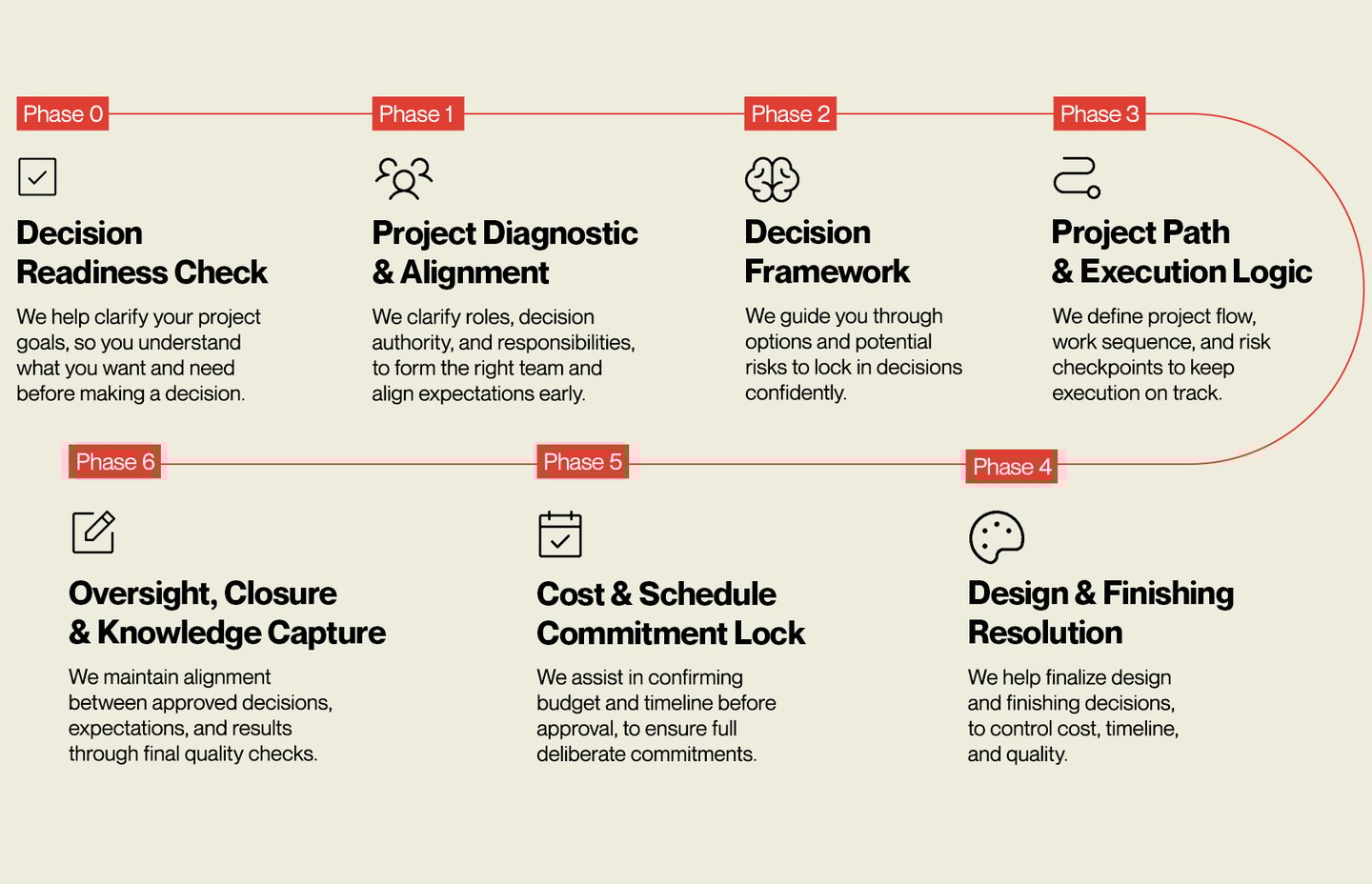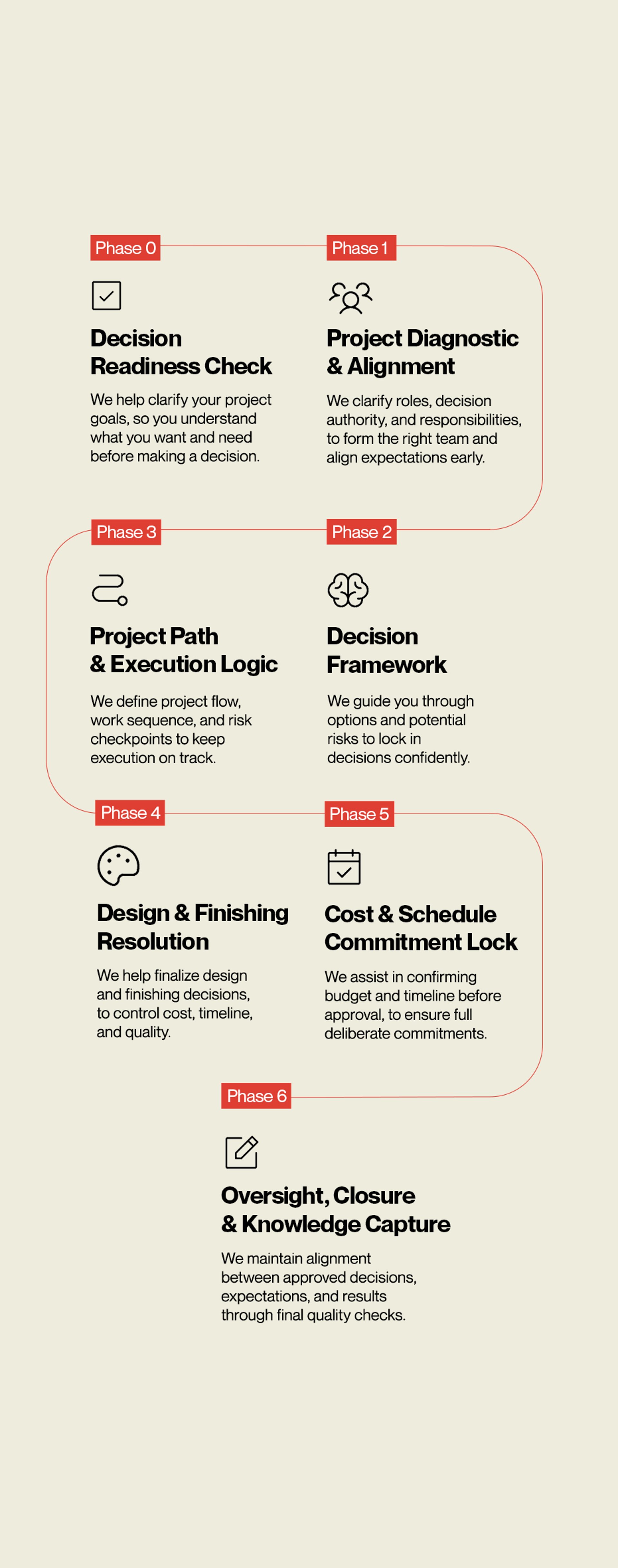 We help clients think clearly,lock decisions early,and protect their projects from chaos.