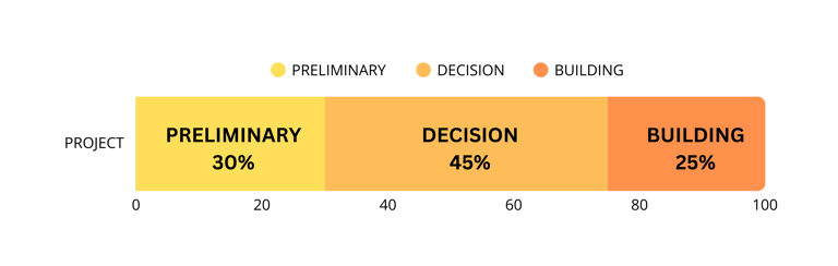 In the world of project management, every project is made up of three essential processes that together account for 100% of the project's success. These processes are the Preliminary Process, the Decision Process, and the Building Process. It’s funny how the Building Process often gets the most blame when things go wrong, even though it only contributes 25% to the overall outcome.